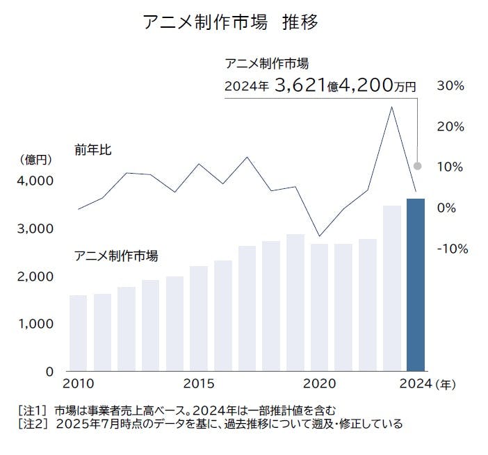引用:「アニメ制作市場」動向調査2025 – 帝国データバンク