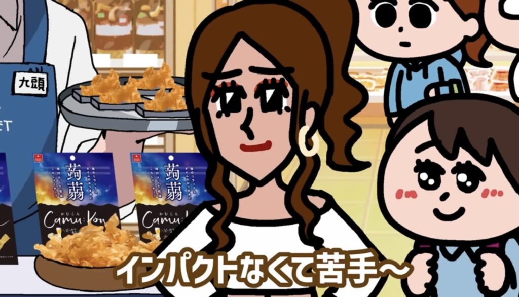 こんにゃくを使用したおつまみは、健康志向ゆえに落ち着いた印象になりやすく、消費者の記憶に残りにくいという課題があった。