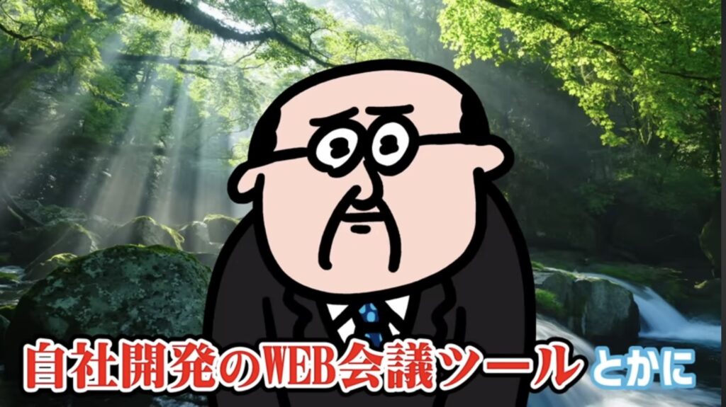 コミカルな展開の中で、“無料Web会議ツールの脆弱性”を自然に伝える構成となっており、笑いながらセキュリティの重要性を理解できる内容になっている。