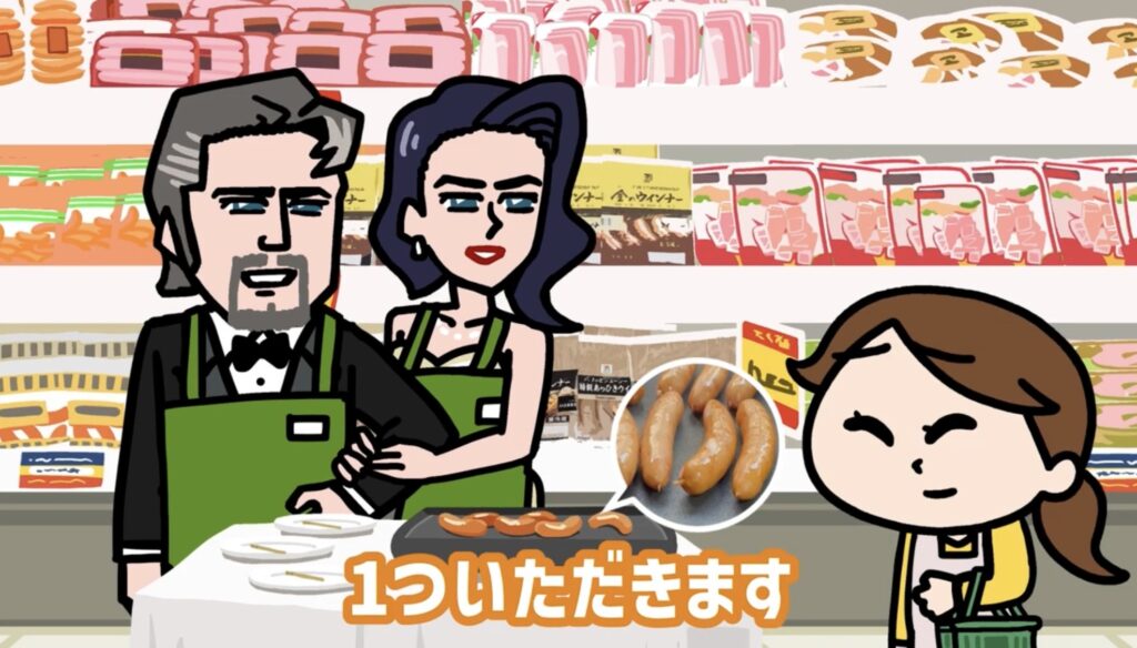 “セレブなのに試食販売をしている”というギャップと、買い物客との軽快なやり取りが作品全体を引っ張り、視聴者は次第に惹き込まれていく。